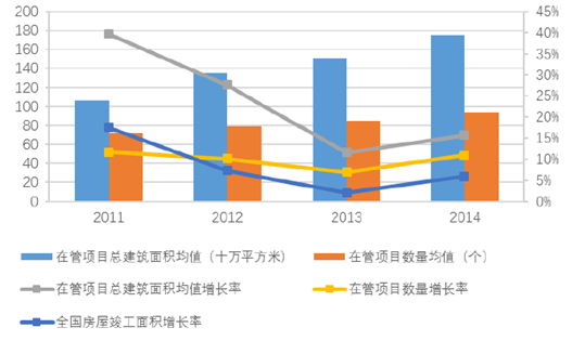 2011-2014年百強企業服務規模變化趨勢