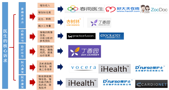 縱觀互聯網發展史,相繼顛覆了紙媒、通訊、零售、旅游等行業領域,其核心脈絡是從易到難依次 滲透到具備低效率、多痛點、空間大、長尾特征的行業中。我國醫療 服務行業正是具備大空間、低效率、多痛點、長尾特征的行業,互聯 網+醫療發展潛力巨大。從服務對象看,以醫療服務生態中三大核心要素—患者、醫生和 醫院為服務對象,形成三類主要的互聯網醫療商業模式,即服務于患 者環節的互聯網醫療、服務于醫生環節的互聯網醫療和服務于醫院環 節的互聯網醫療。