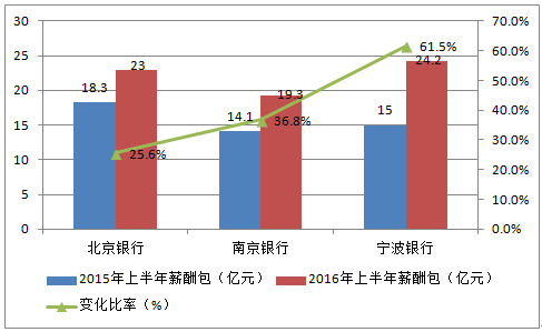 除上述6家銀行外,其他銀行上半年薪酬包均較去年同期有所增長。其中寧波、南京、北京3家城商行的薪酬包增速讓人艷羨,同比分別增加61%、37%、26%。中信、浦發(fā)兩家股份行的薪酬包也分別有10%以上的增幅。
