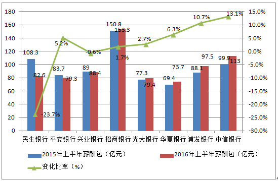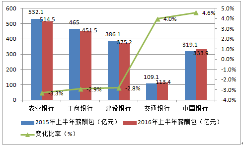一、整體薪酬:工行農(nóng)行建行興業(yè)平安民生6家下降