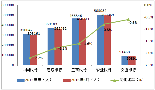 五大國有銀行上半年員工數(shù)量