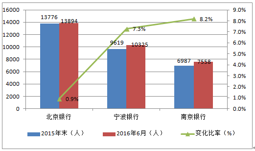 城商行上半年員工數(shù)量