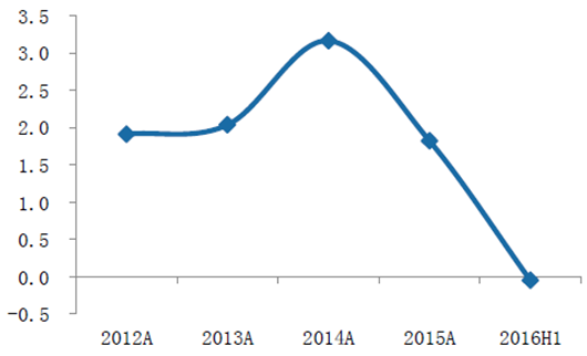 家紡類企業收入增速整體13 年之后基本維持在0-5%的區間,凈利潤增速在14 年達到20%的峰值,之后隨著消費市場的低迷不振,增速開始迅速下降,16 年上半年降至-11%。目前行業內公司也在積極探索,只是短期內業績貢獻有限。