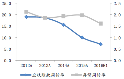 營運能力:上半年應收賬款周轉率和存貨周轉率都有所下滑,經營性凈現金流在14 年之前處于增長態勢,和收入、凈利增速一致的是,15 年后迅速下降。