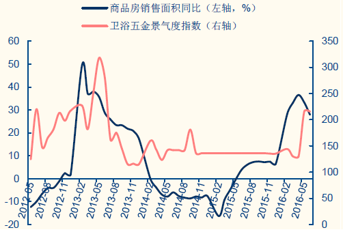 衛(wèi)浴五金行業(yè)景氣指數(shù)稍滯后于房產(chǎn)銷售景氣度