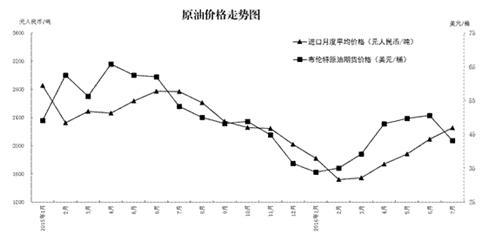 今年1-7月份,受國際原油價格持續低迷影響,與去年同期相比,原油產量降幅較大,原油進口快速增長,原油加工比較平穩。