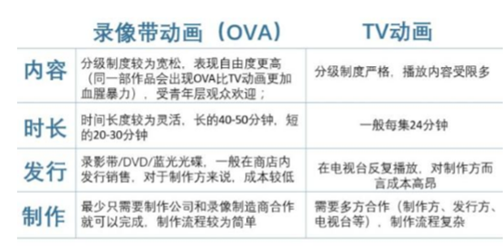 日本 OVA 錄像帶動畫和 TV 動畫的對比