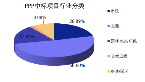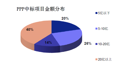 中標項目規模較大,方向集中交通、市政、環保等行業。PPP 共落地項目145 個,合計投資3028 億元。項目金額主要集中在20 億元以上,占40%;投資方向主要集中在交通領域,投資金額占比超50%。其他重點領域包括市政,占比21%,園林與環保占比18%。