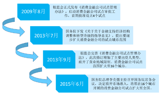 從2009-2015年,消費金融領(lǐng)域政策變化歷程