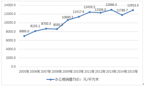 2005-2015年我國辦公樓銷售均價統計表(元/平方米)