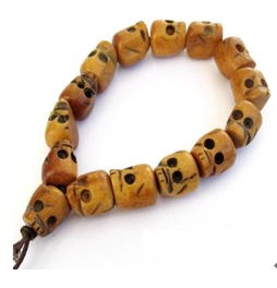 其它品種除了上述的菩提類、寶玉石類、果實(shí)(核)類、竹木類之外,皆應(yīng)屬于此項(xiàng)。牛角、牛骨、犀角、象牙等由于律制所限,一向被漢傳佛教所排擠,卻深受藏傳佛教的喜歡,藏傳佛教甚至還有用人頭骨來制造佛珠的,佩帶或持用這些佛珠,也就更能使人了知生死的原本。