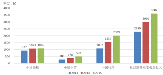 自 2013 年 12 月工信部向三大運營商發放 TD-LTE 牌照,于 2015 年 2 月向中國聯通與中國電信發放LTE-FDD牌照,中國4G業務快速推動,截至2015年底4G用戶 達28894萬戶,占移動用戶比例達29.6%。由于4G用戶擁有更高的APRU不DOU, 4G的推廣將進一步促進流量的消費。流量消費上漲,但流量單價的下降將使運營商數據業務收入增速放緩。一直以來, 運營商較高的流量價格就受到消費者抱怨。從2015年一季度經濟形勢座談會上總理感 嘆“流量費太高”,到一個月后國務院會議明確提出促進降費提速虧大具體措施,政府的介入促使運營商紛紛降低流量資費,推出流量不清零、流量轉贈等服務,但公眾期待的全業務大規模降低資費并沒有明顯出現。同時運營商的網絡管道利用率仍然偏低,設備的利用效率還偏低。對于運營商而言,為了響應國家“提速降費”的號召, 同時要保證自身營收的不斷增長,唯一的出路就是通過移動互聯網內容提供商等企業對用戶的流量消費進行付費,即企業級流量經營。