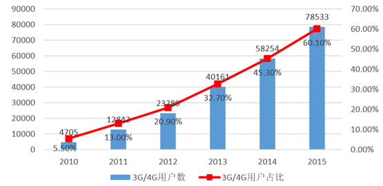 核心提示:隨著4G網絡服務不移動終端的迅速普及,全民進入移動于聯網時代,據工信部公 布的《2015 年通信運營業統計公報》統計,2015 年移動電話用戶凈增 1964.5 萬戶, 總數達13.06億戶,移動電話用戶普及率達95.5部/百人,比上年提高隨著4G網絡服務不移動終端的迅速普及,全民進入移動于聯網時代,據工信部公 布的《2015 年通信運營業統計公報》統計,2015 年移動電話用戶凈增 1964.5 萬戶, 總數達13.06億戶,移動電話用戶普及率達95.5部/百人,比上年提高1部/百人。2015 移動寬帶用戶(3G/4G)滲透率達到60.1%, 4G用戶新增28894.1萬戶,總數達38622.5 萬戶。4G基站新增92.2萬個,總數達到177.1萬個。
