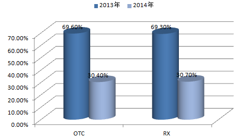 2013—2014年皮膚病用藥市場OTC/RX市場份額