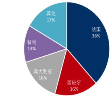 2016H1 散裝酒進口國市場份額