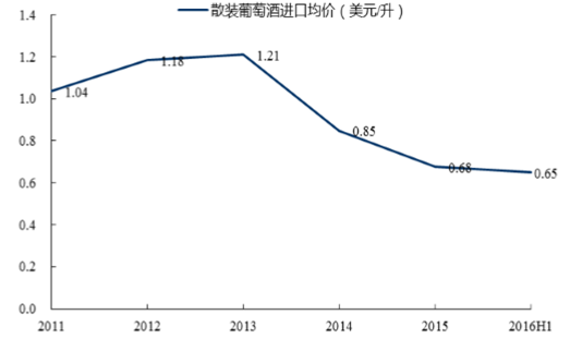 散裝進口葡萄酒均價變化