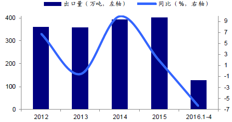 2012-2016年全球主要國家奶粉出口量及同比