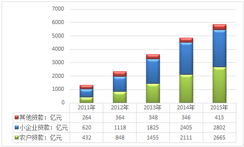 截止2014年底我國村鎮銀行貸款余額為4862億元,較上年同期增長1234億元,存款余額為5808億元,存款余額增加1176億元。2015年底我國村鎮銀行貸款余額為5880億元,存款余額為7480億元。