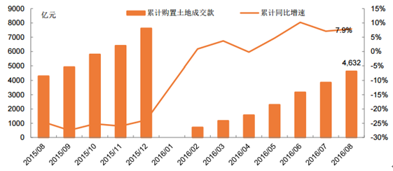 1-8 月土地成交價(jià)款增速回升
