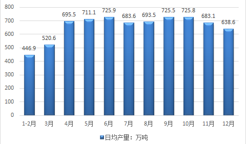 2015年我國水泥月度日均產(chǎn)量走勢圖