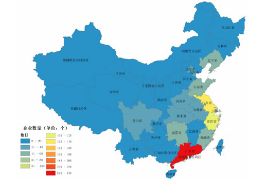 從地域上來看,主要集中在廣東、江蘇、浙江等省份,表現(xiàn)出明顯的向經(jīng)濟發(fā)達地區(qū)集聚和向原材料產(chǎn)地集聚的特性。全國涂料行業(yè)規(guī)模以上企業(yè)分布狀況如下:
