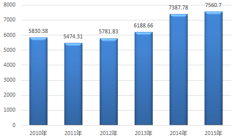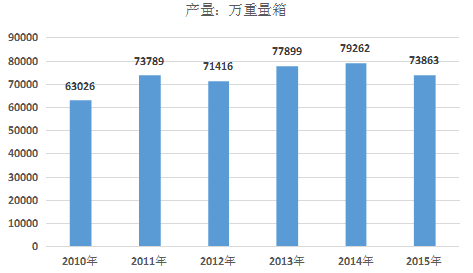 2010-2015年中國塑料制品產(chǎn)量增長情況