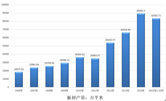 2006-2015年我國石材行業(yè)規(guī)模以上企業(yè)板材產(chǎn)量走勢圖