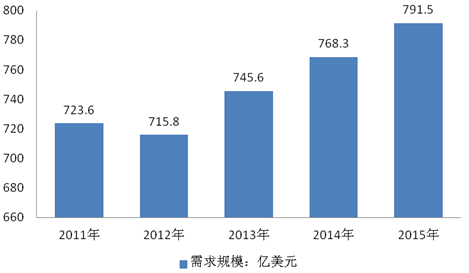 2011-2015年歐洲建筑裝飾裝修行業需求規模:億美元
