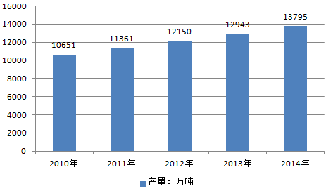 2010-2014年全球苜蓿干草產量:萬噸
