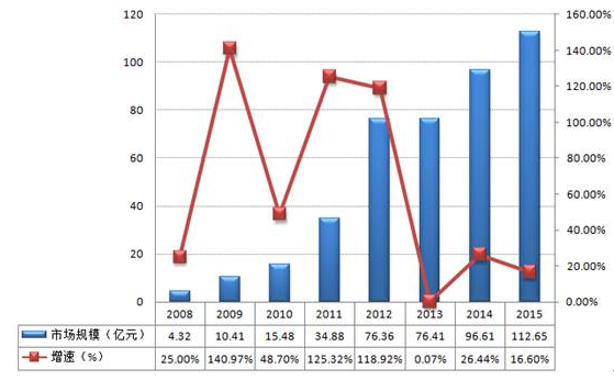 2008-2015年我國(guó)石斛行業(yè)市場(chǎng)規(guī)模和增速情況