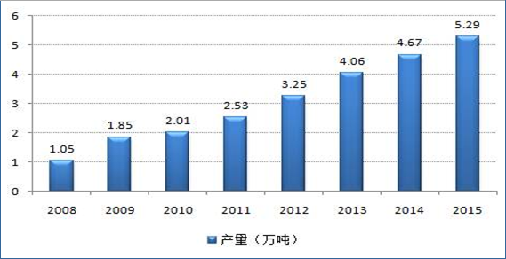 2008-2015年我國(guó)鐵皮石斛行業(yè)產(chǎn)量情況