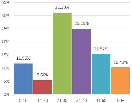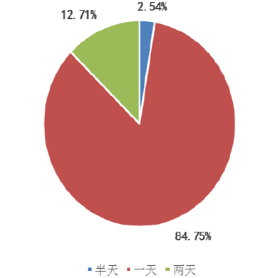 從時間半徑角度,接近一半的游客能夠在1 小時以內到達迪士尼,上海地區的交通環境對于游客充分友好。不過,仍有19.59%的游客耗時超過3 小時,一部分屬于外地自駕,另一份則屬于高鐵游客(浦東地區暫時沒有火車站,換乘的11 號線地鐵又與上海本站及虹橋站有一定距離)。不過,從消費者需求偏好角度看,83.13%的游客僅能夠接受2 小時以內的時間距離,這一現象或許在運營一段時間后會逐漸體現。因此,大型主題公園項目仍需要考慮區位因素,能夠與機場、地鐵及高鐵網絡相連并且離市區自駕半徑不超過2 小時的地理位臵最為適宜,恰到好處的距離能夠避免打磨游客的消費意愿。