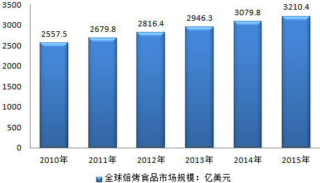 2010-2015年全球焙烤食品市場規模:億美元