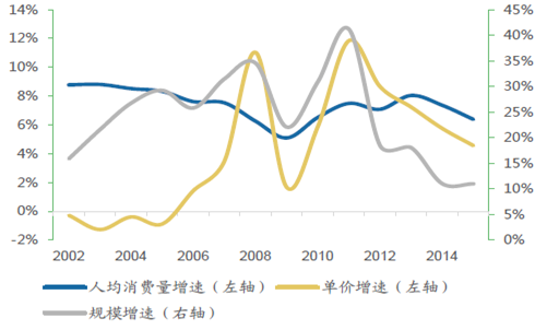從“量”(人均面包糕點(diǎn)食品消費(fèi)量)和“價(jià)”(面包糕點(diǎn)食品單價(jià))兩個(gè)維度進(jìn)行分析,未來(lái)幾年的面包糕點(diǎn)行業(yè)包括單獨(dú)的面包子行業(yè)仍然是一個(gè)量?jī)r(jià)齊升的發(fā)展過(guò)程,雖然略低于13年的高增長(zhǎng),但預(yù)計(jì)仍可維持10%以上。