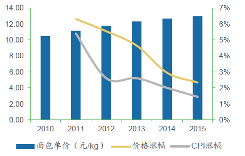 面包平均單價(jià)增速較緩慢