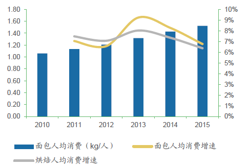 面包人均消費(fèi)增速略高于面包糕點(diǎn)行業(yè)整體