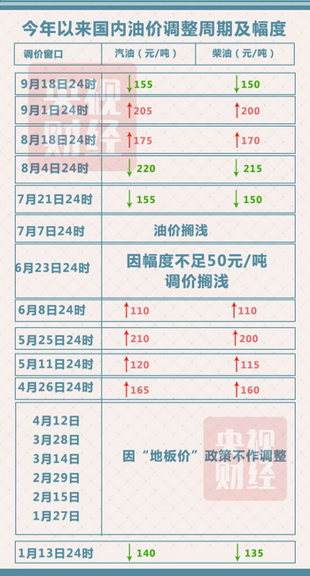 最新梳理!年內(nèi)國內(nèi)油價調(diào)價一覽 六升四降八擱淺