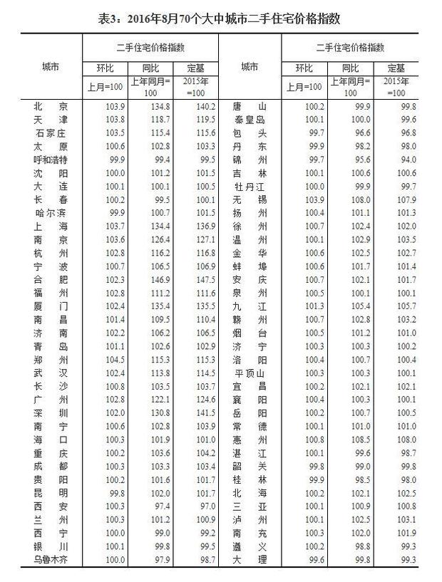 (二)與上年同月相比,70個(gè)大中城市中,價(jià)格下降的城市有6個(gè),上漲的城市有62個(gè),持平的城市有2個(gè)。8月份,同比價(jià)格變動(dòng)中,最高漲幅為44.3%,最低為下降3.8%。