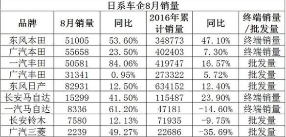 分析認為,廣汽本田、東風本田、一汽豐田、廣汽豐田以及東風日產均擁有較為完善的產品線,可覆蓋大部分國內主力細分市場,這是保證較高銷量增速的一個重要原因。