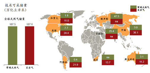 圖1 全球頁巖氣技術(shù)可采儲(chǔ)量分布
