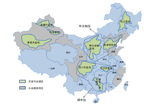 中國(guó)頁巖氣資源主要分布在中國(guó)南方古生界、華北地區(qū)下古生界、塔里木盆地寒武-奧陶系廣泛發(fā)育有海相頁巖以及準(zhǔn)格爾盆地的中下侏羅統(tǒng)、吐哈盆地的中下侏羅統(tǒng)、鄂爾多斯盆地的上三疊統(tǒng)等發(fā)育有大量的陸相頁巖,地理位置上處于塔里木、準(zhǔn)噶爾、松遼等9個(gè)盆地。