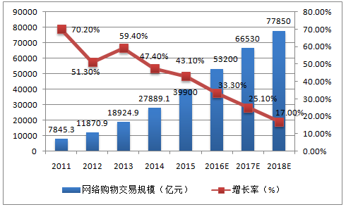 2017年中國網絡購物市場交易規模及行業發展趨勢預測