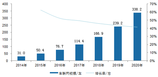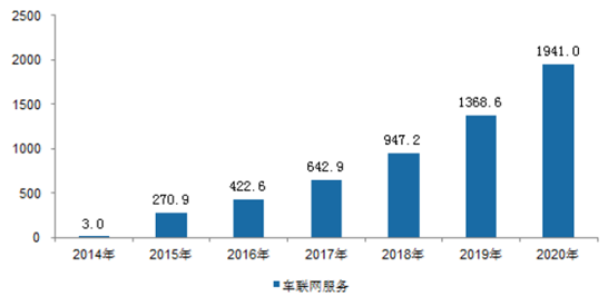 2014-2020年車聯(lián)網(wǎng)服務(wù)規(guī)模(億元)