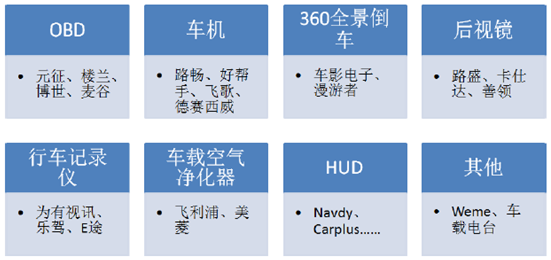后裝市場產(chǎn)品眾多,關(guān)注具備殺手級應(yīng)用的企業(yè)。當(dāng)前后莊車載終端產(chǎn)品功能和服務(wù)的差異化程度較低,互聯(lián)網(wǎng)化的創(chuàng)新產(chǎn)品較少,競爭日益激烈。智能車載終端作為車輛、后臺支撐服務(wù)、手機的連接載體,除了具備車輛檢測、駕駛習(xí)慣跟蹤等基本功能以外,必須具備一系列能增加用戶粘性的特色功能以及創(chuàng)新性應(yīng)用才能從眾多產(chǎn)品中脫穎而出。
