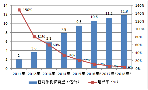 2011-2018年中國智能手機保有量預(yù)測