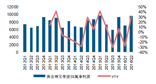 2012Q1-2016Q2 黃金珠寶凈利潤