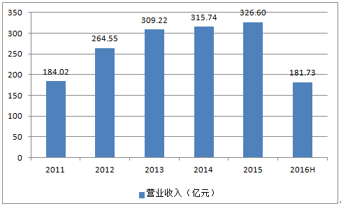 2011-2016年貴州茅臺營業(yè)收入趨勢圖