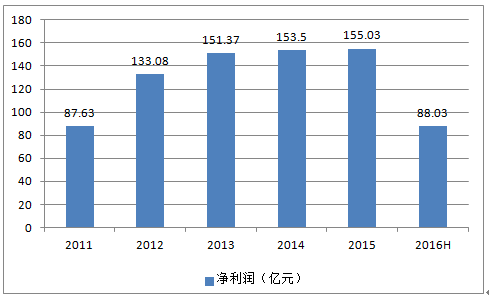 2011-2016年貴州茅臺凈利潤趨勢圖
