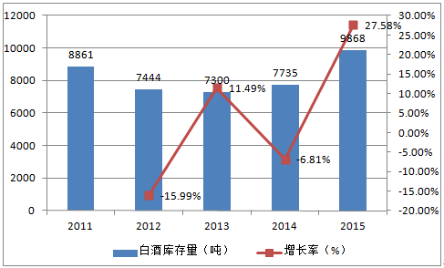 2011-2015年中國白酒銷量變動趨勢
