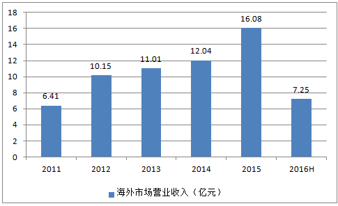 2011-2016年貴州茅臺海外市場營業(yè)收入趨勢